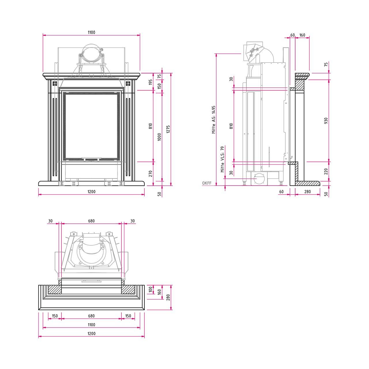 | Abstand zur Dämmung Kamineinsatz | mm | 90 |
