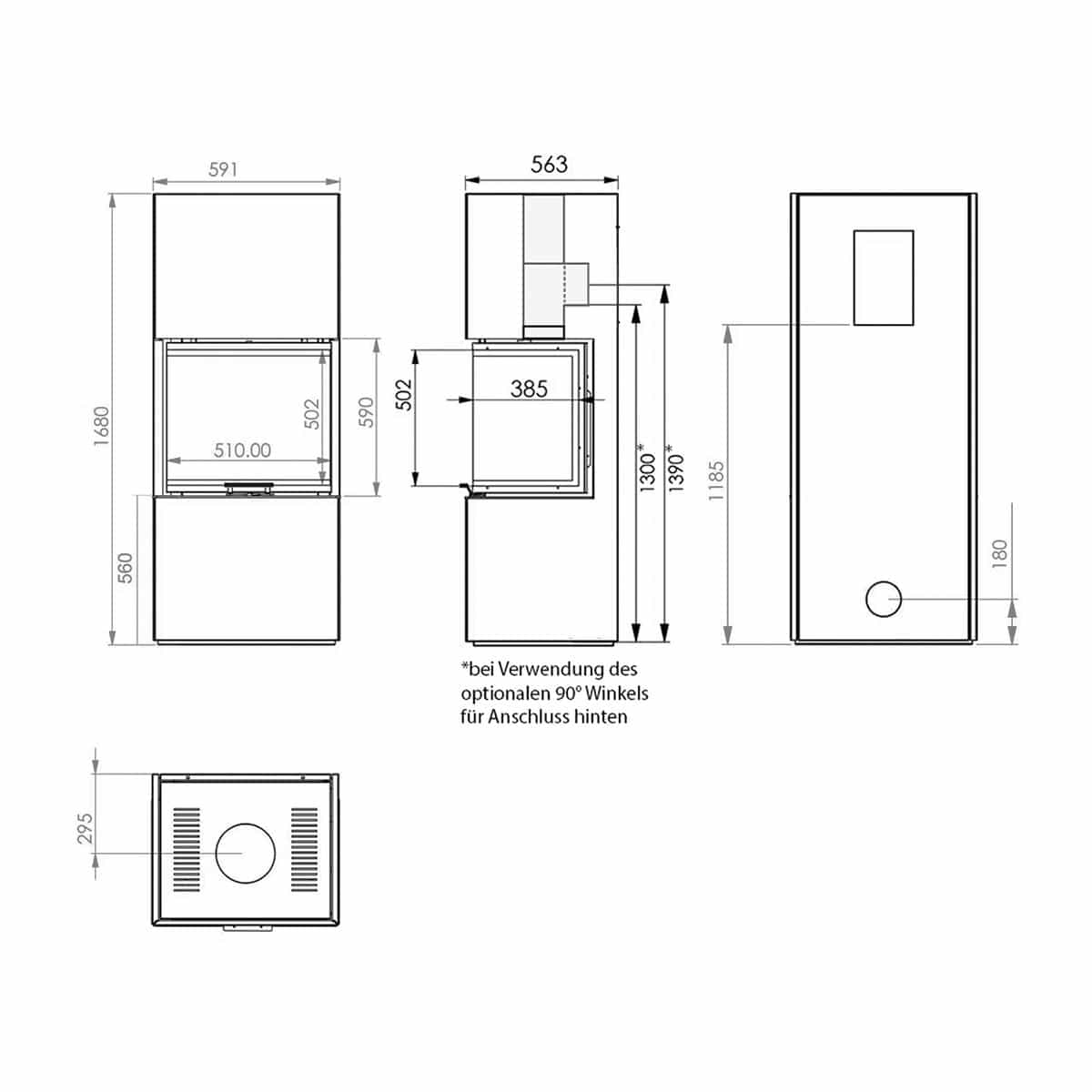 - flexible Installation: Rauchrohranschluss oben oder hinten möglich