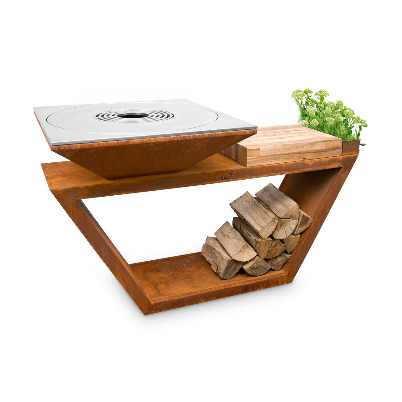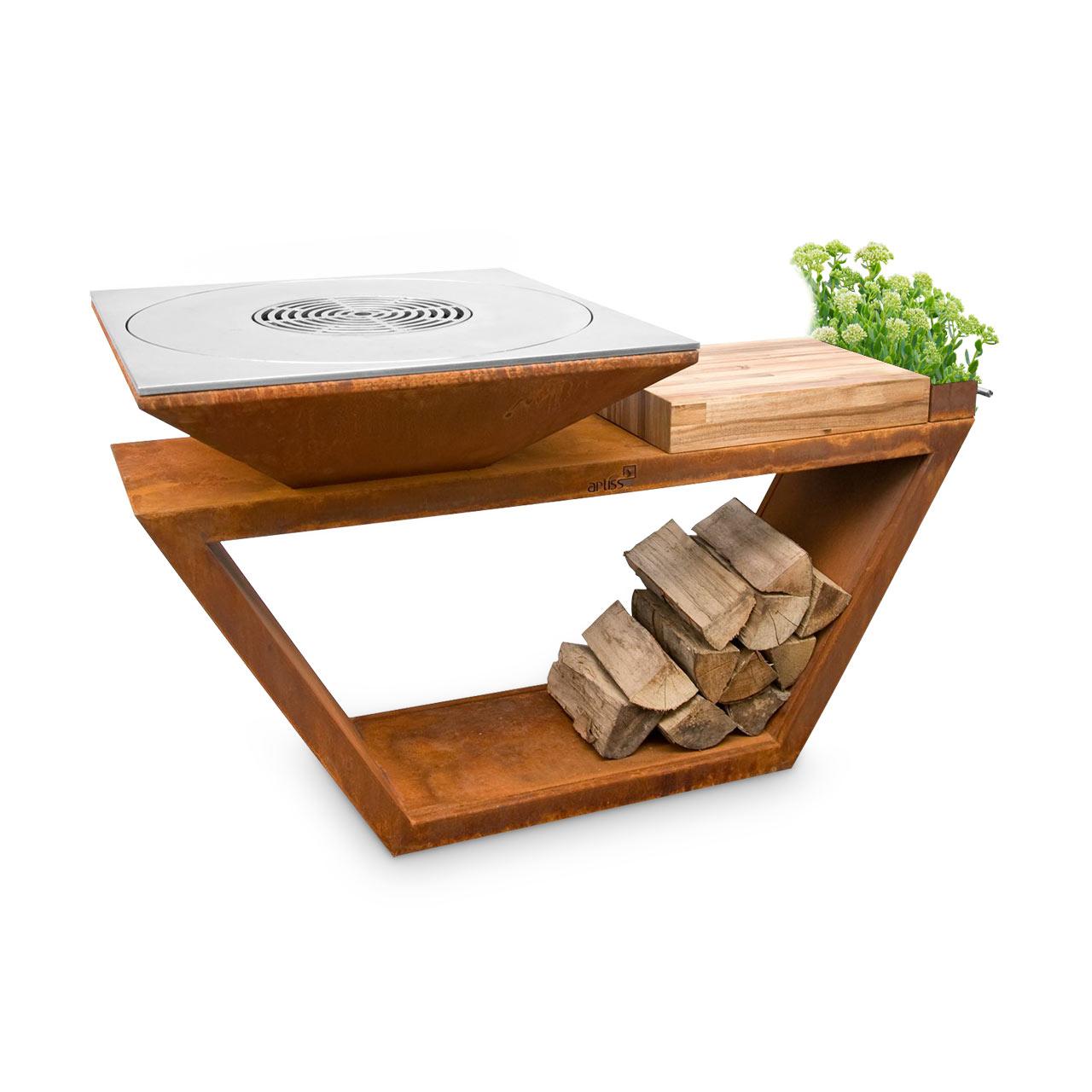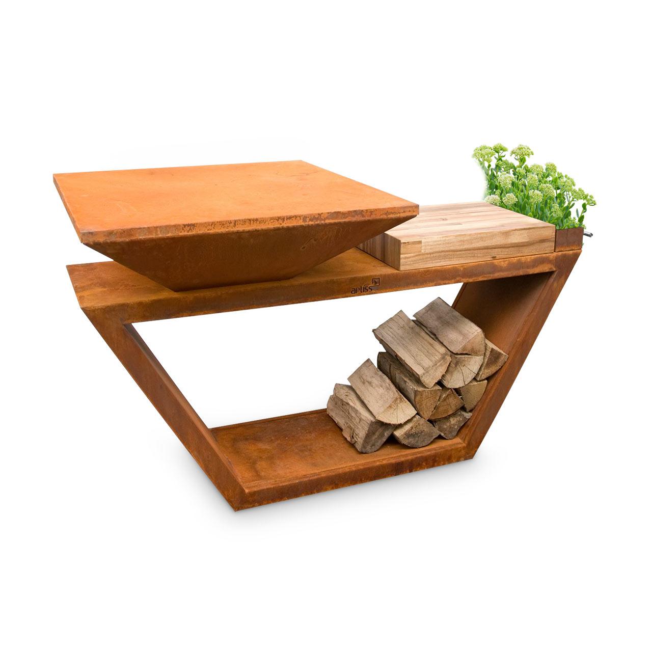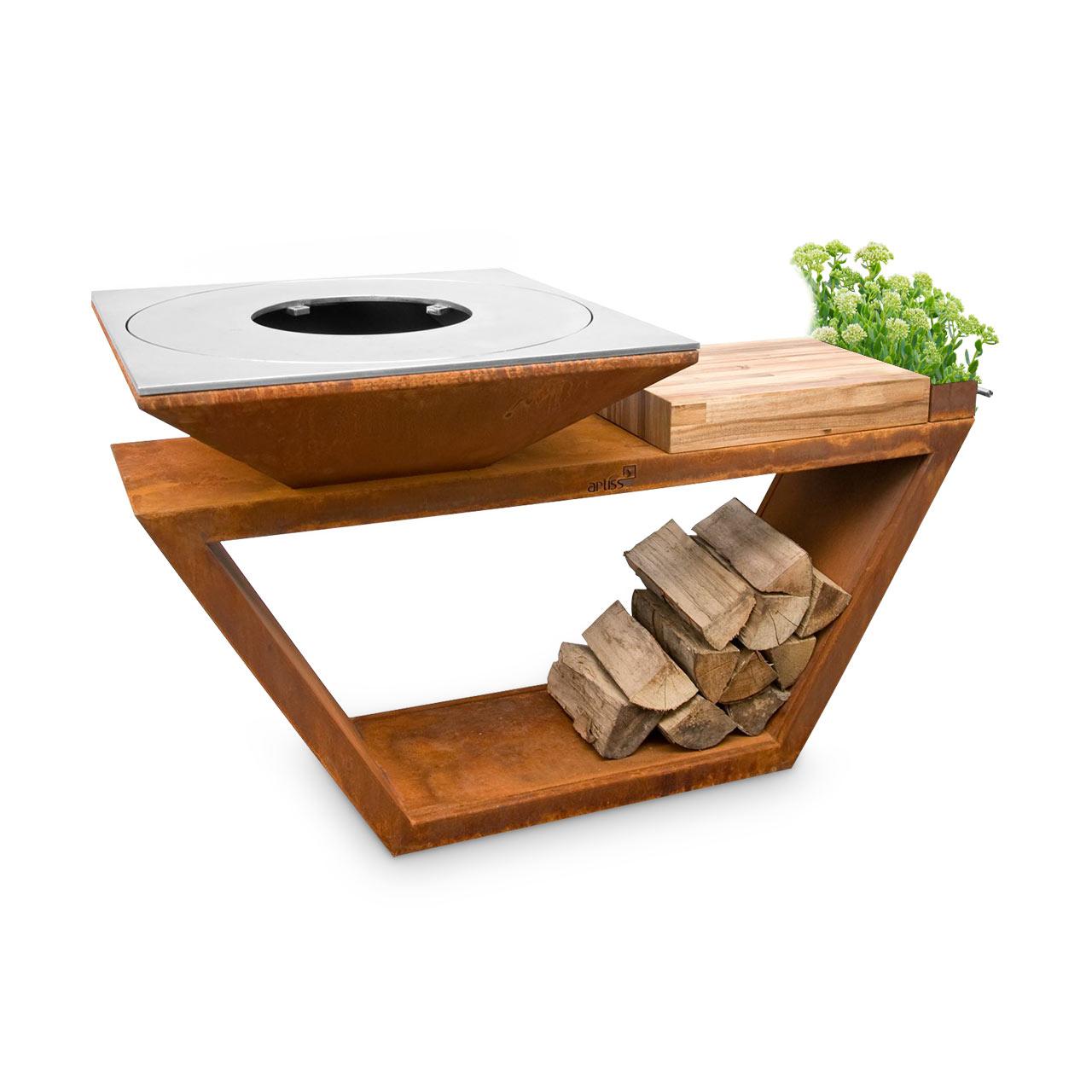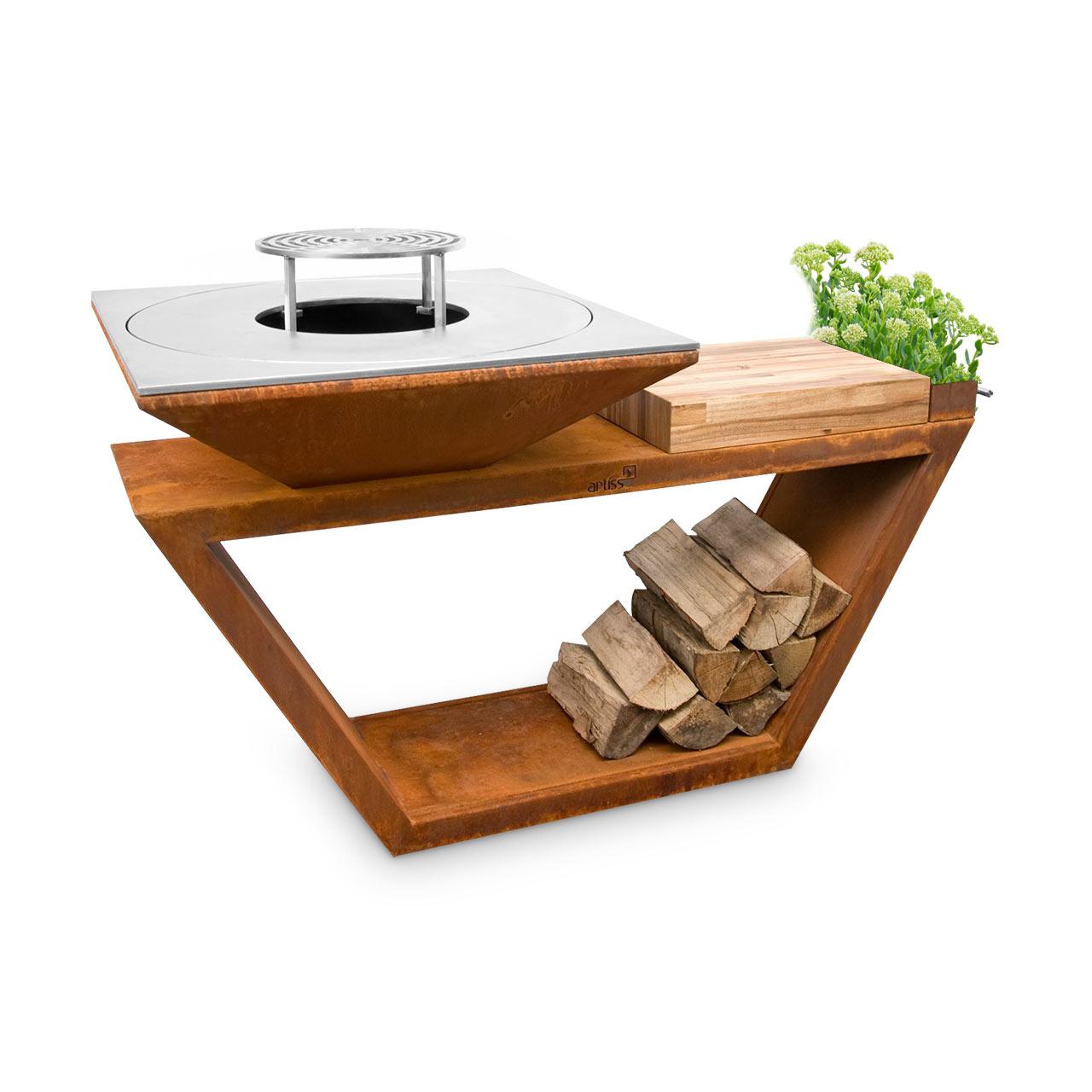 Wer nach dem Grillen bei einem kleinen Holzfeuer entspannen möchte, kann den Artiss G4 Corten auch als Feuerschale nutzen. Für stets genügend Brennholz sorgt derweil der Sockel, welcher als Holzfach verwendet werden kann.