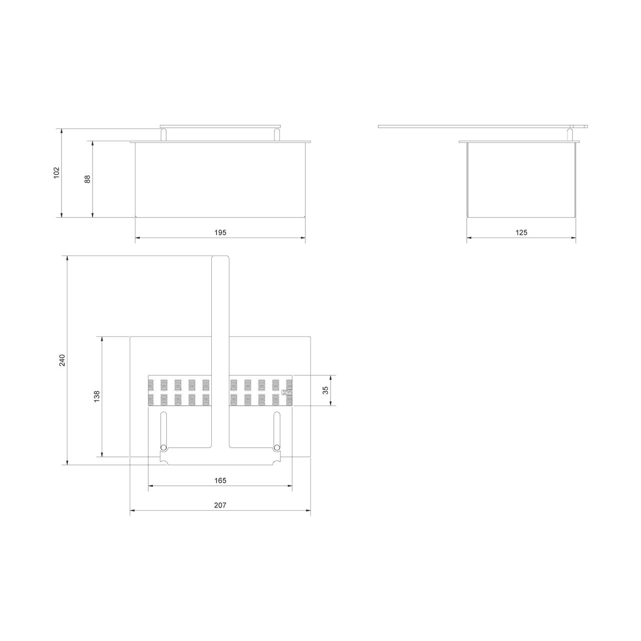| Abmessungen | ohne Löschgriff: H88/B207/T138 mm inkl. Löschgriff: H102/B230/T240 mm |