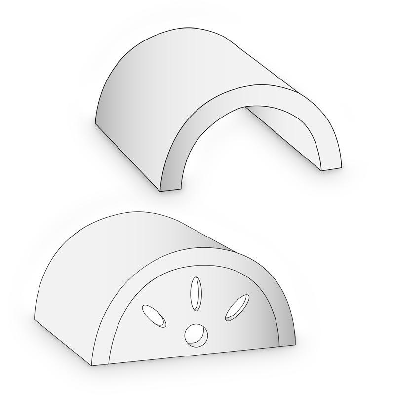 Den BRULApor Gewölbeaufsatz 1/2 Kreis finden Sie in unterschiedlichen Ausführungen. Gleich bleibt das halbkreisförmige Gewölbe, das mit den Innenradien 170, 220 und 250 mm erhältlich ist. Bei letzterer Ausführung bietet BRULA das Gewölbe mit zusätzlicher Inneneinlage an.