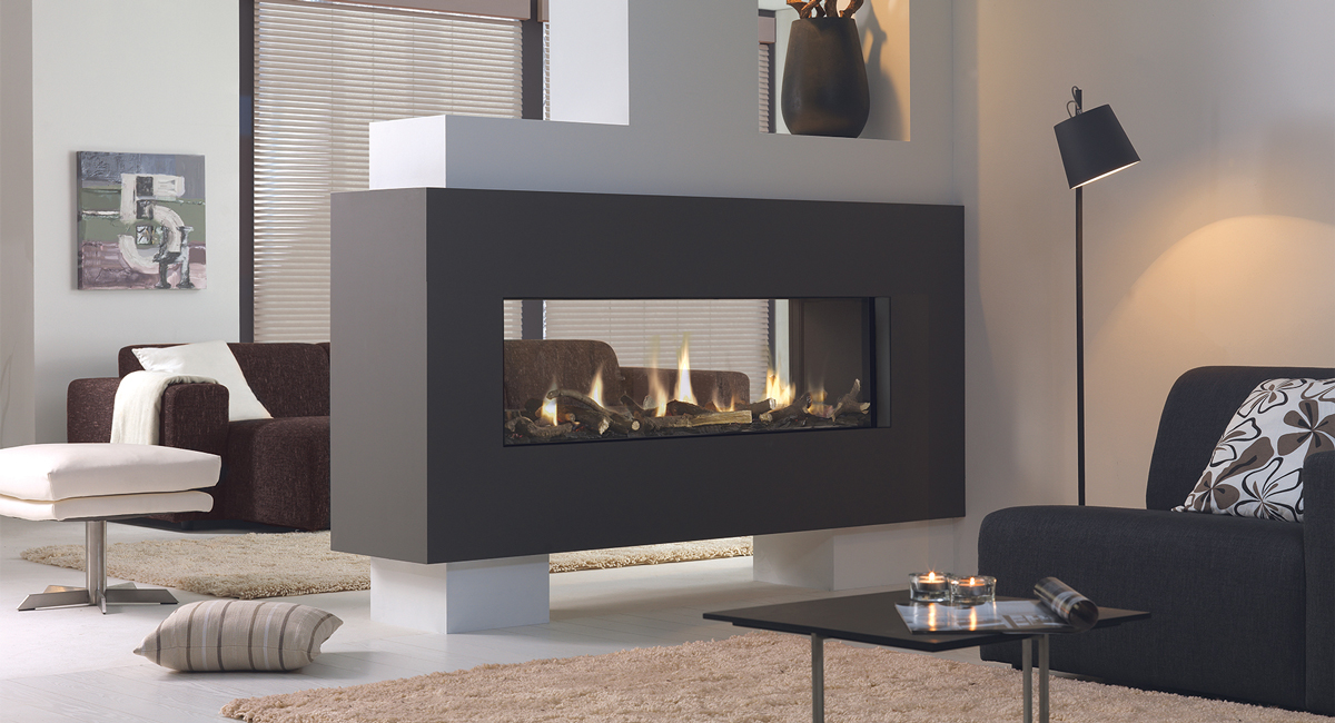 - Transparenter Tunnel Gaskamin mit Feuersicht von zwei Seiten