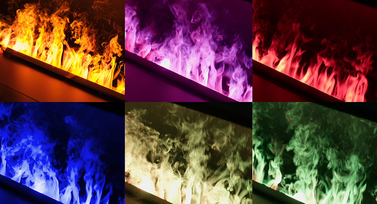- Einstellbare Flammenfarben (Blau, Rot, Violett, Aquamarin, Mischfarben)