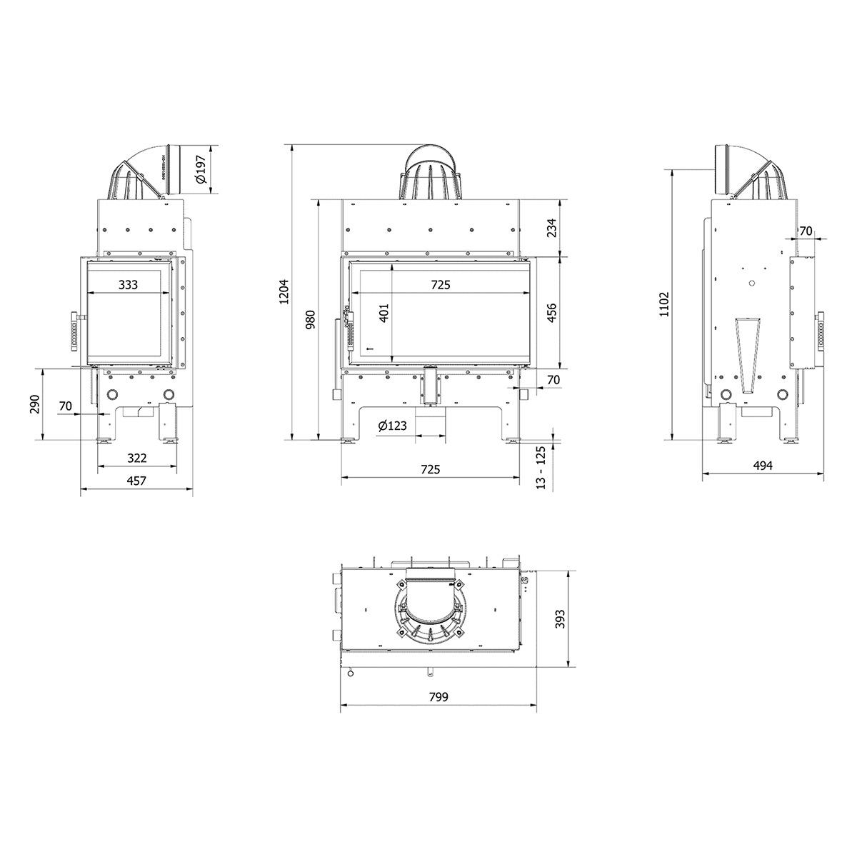 Kratki Kamineinsatz Lucy 12 L/BS mit praktischer Aschelade