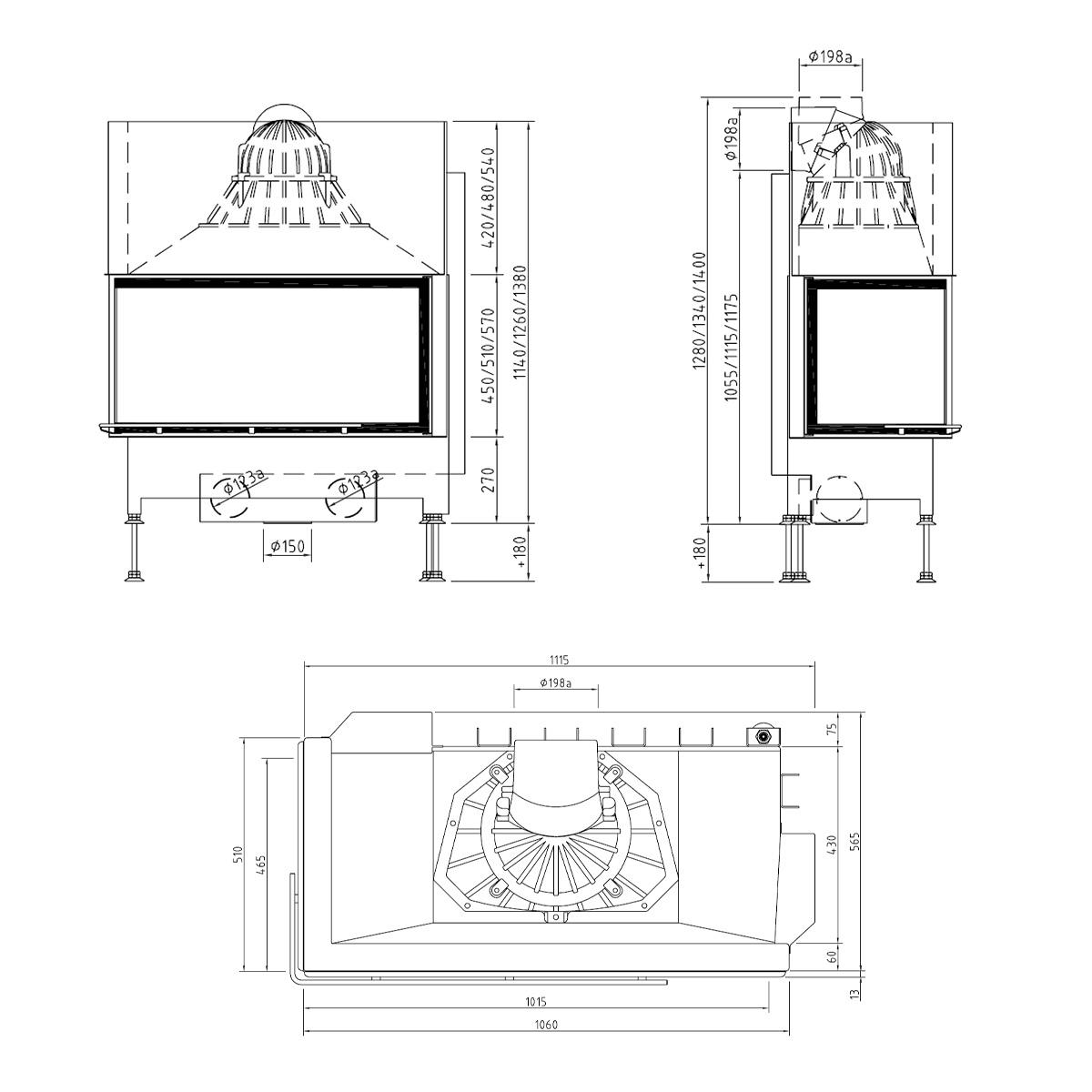 Eck-Kamineinsatz Schmid Ekko L 100(45) h mit 9 kW - Türhöhe: 51 cm - Brennraumauskleidung: Schamotte Weiß - modulares Blendrahmensystem: nein