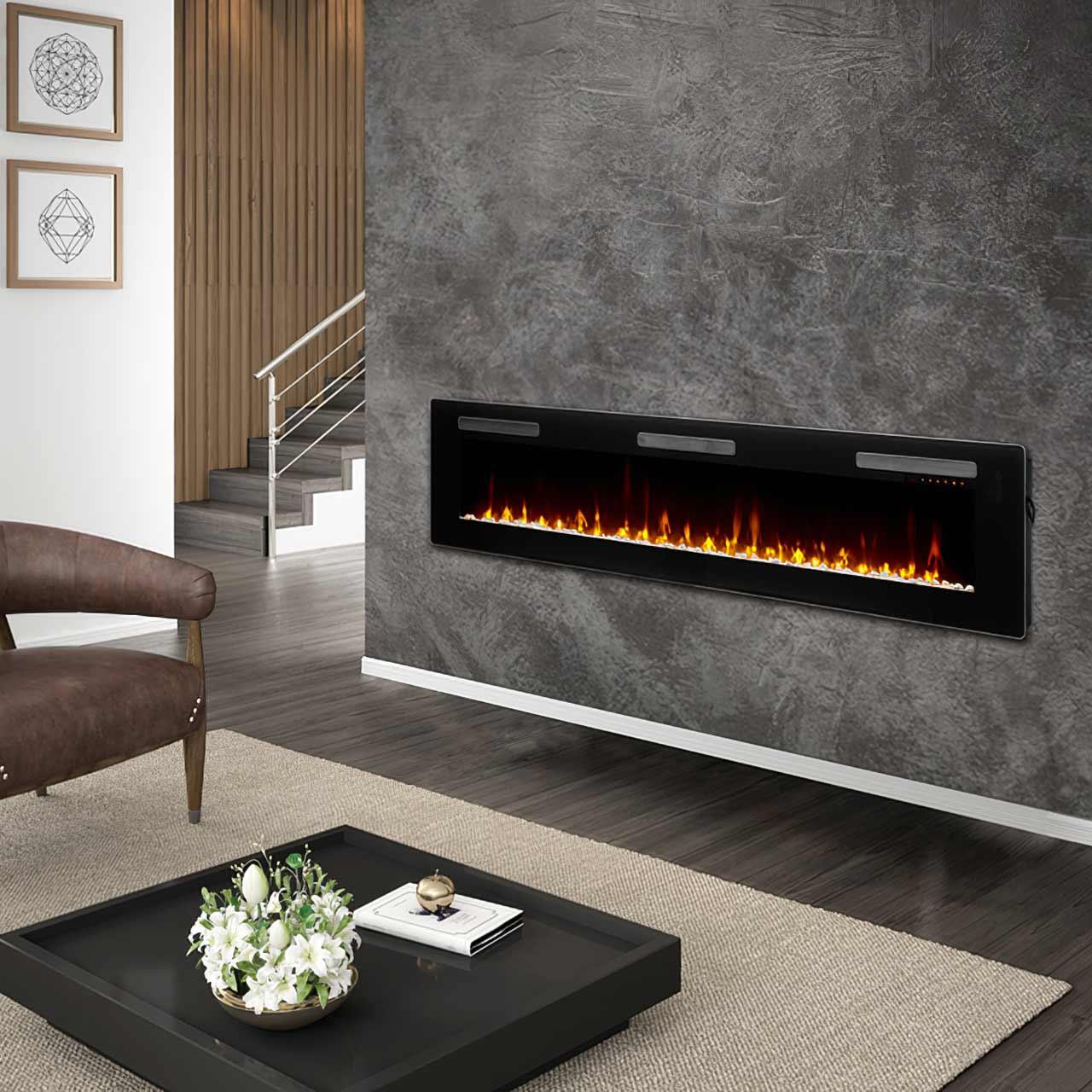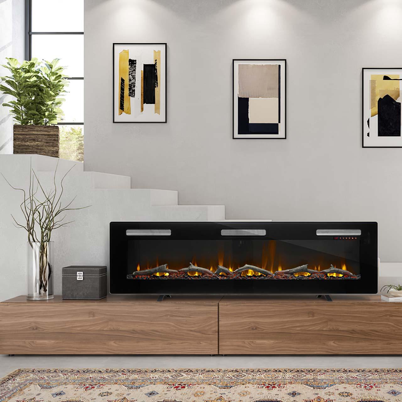 Ein gemütliches Flammenschein - Allein schon beim bloßen Gedanken an ein Kaminfeuer stellen sich Gemütlichkeit und Entspannung ein; wenn da bloß nicht die Verbrennungsrückstände und der störende Rauch wären! Wer ein authentisches Feuer genießen, dabei aber auf Asche und Qualm verzichten möchte, der kann getrost zu diesem Elektrokamin greifen. Dieser wird nicht mit Holz oder Gas befeuert, sondern mit Strom aus der Steckdose! Daher kann dieser elektrische Kamin in jeden Wohnraum integriert werden, ohne dass ein Schornstein vorhanden sein muss. Auch ein geeigneter Lagerplatz für Brennmaterial fällt weg. Der Elektrokamin Glen Dimplex Sierra 72" kann auf vielfältige Weise installiert werden: als Wandmodell entweder an der Wand befestigt oder in diese eingesetzt. Dank der mitgelieferten Standfüße ist der Elektrokamin Glen Dimplex Sierra 72" auch als Tischmodell, beispielsweise auf einem Sideboard, genutzt werden. Optisch erinnert der Kamin dann an einen Smart-TV, auf dem ein authentisch wirkendes Feuer als Dauerprogramm läuft.