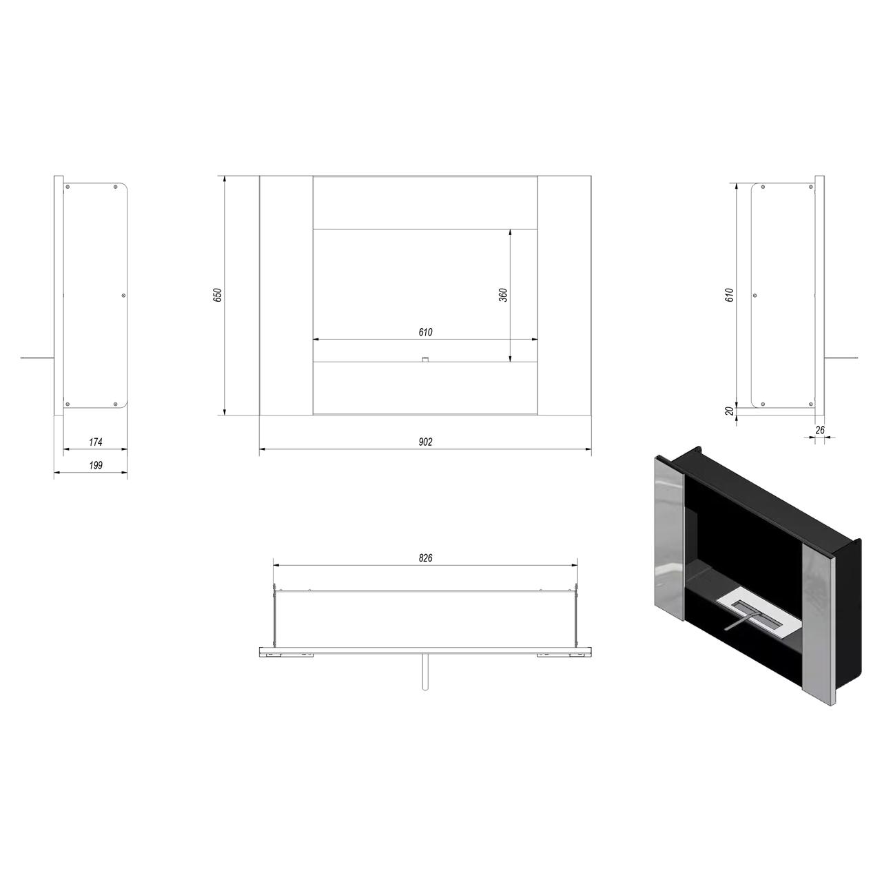 - Zwei Installationsoptionen: Wandmontage oder Einbau in eine Aussparung.