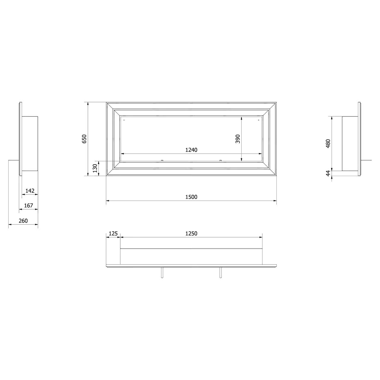 | Abmessungen (HxBxT) | 650 x 1500 x 142 mm |