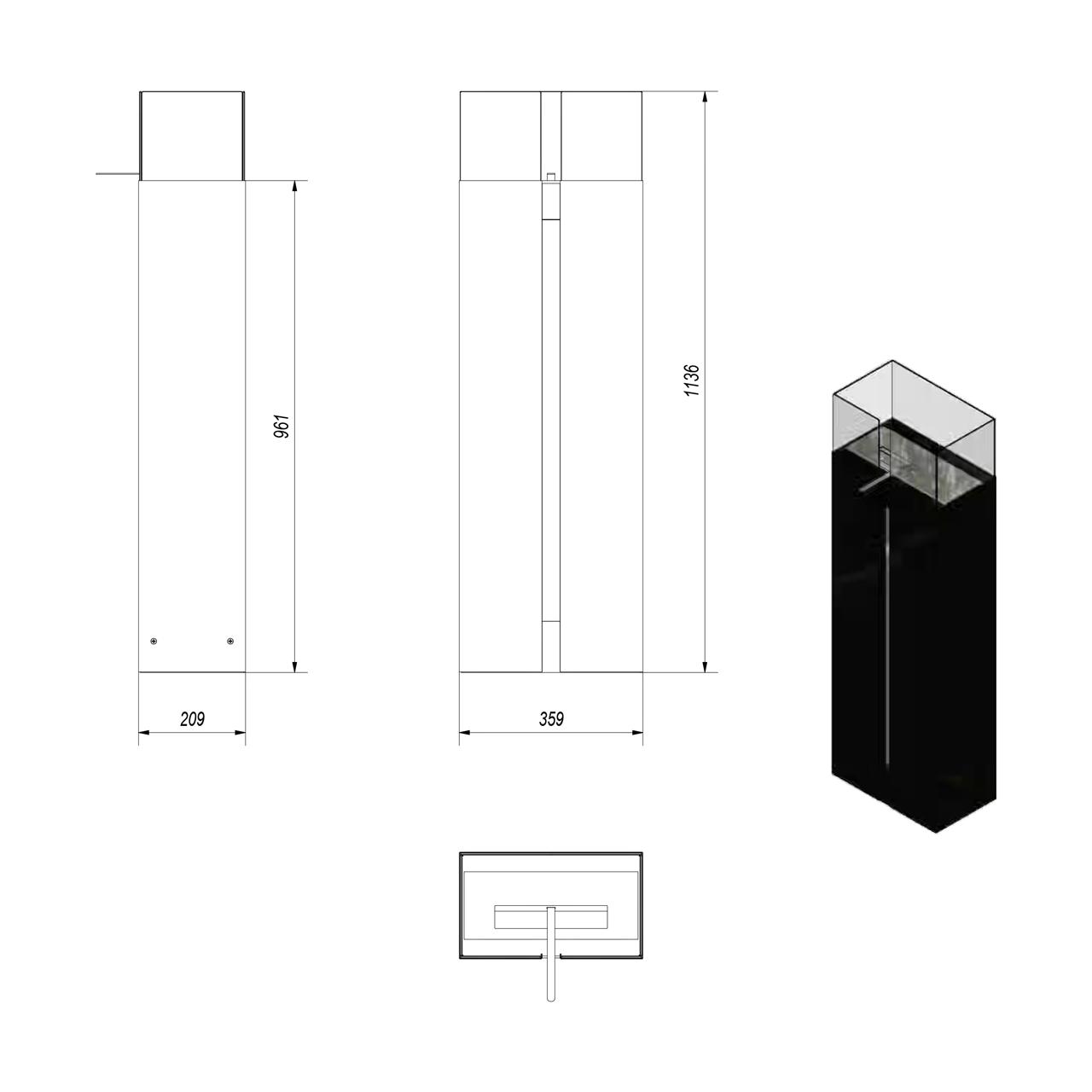 | Abmessungen (HxBxT) | 1135,4 x 359 x 209 mm |