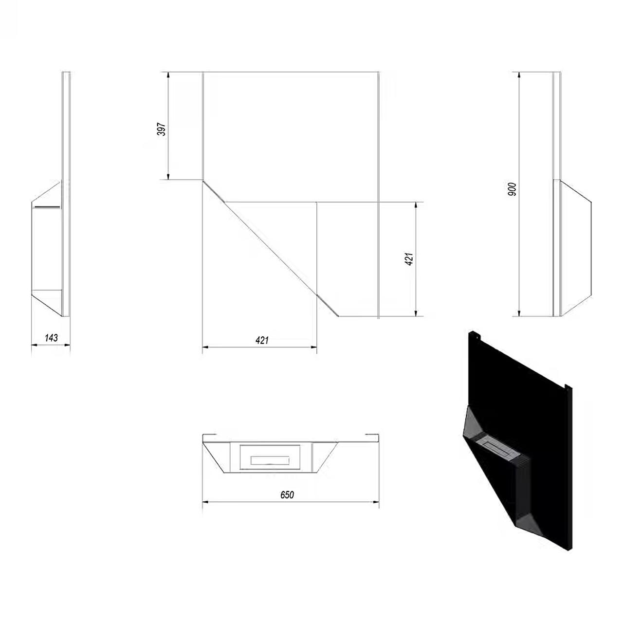 | Abmessungen (HxBxT) | 900 x 650 x 143 mm |