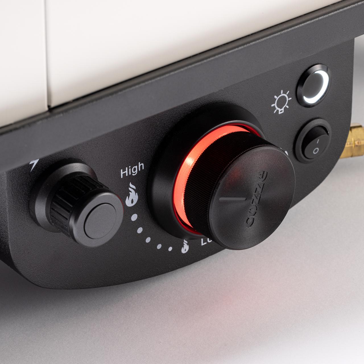 Der Gas Pizzaofen Cozze 17" ist ein innovatives Gerät, das mit einem per Knopfdruck rotierenden Pizzastein Ø 42,5 cm ausgestattet ist. Dank des batteriebetriebenen Motors wird die Pizza besonders gleichmäßig in weniger als 2 Minuten gebacken, ohne dass man die Pizza drehen muss. Der Ofen verfügt über einen leistungsstarken U-förmige Gasbrenner um den Pizzastein angeordnet ist. Mit einer besonders schnellen Aufheizzeit von ca. 25 Minuten ist der Pizzabackofen schnell einsatzbereit. Die komfortable Elektrozündung ermöglicht es, den Ofen bequem per Knopfdruck zu zünden.