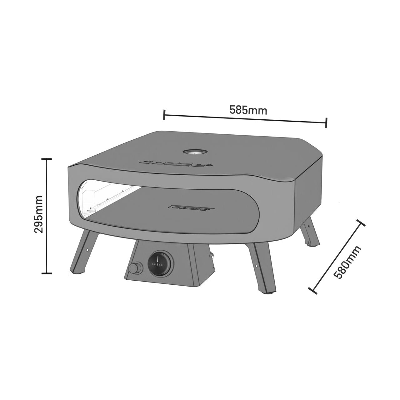 Die Handhabung ist kinderleicht: über einen Drehknopf an der Front können Sie die Temperatur bequem einstellen. Die großzeöffnung von 8 x 36 cm (H x B) sorgt dafür, dass das Einschieben und Herausnehmen der Pizza ein Kinderspiel ist. Der Cozze Pizzaofen Classic überzeugt zudem mit einem stabilen, pulverbeschichteten Stahlgehäuse. Dank seiner Maße von 29,5 x 58,5 x 58,5 cm (H x B x T) passt er perfekt in jede Outdoor-Küche und nimmt nur wenig Platz auf Ihrer Arbeitsfläche ein.