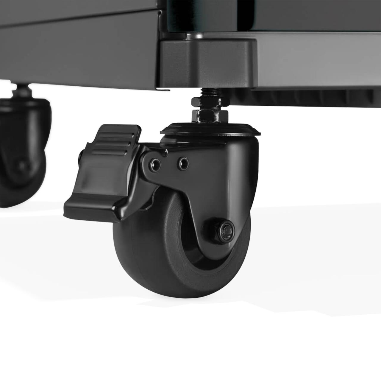- Mobilität: Fixierbare Lenkrollen nach Industriestandard für maximale Beweglichkeit.