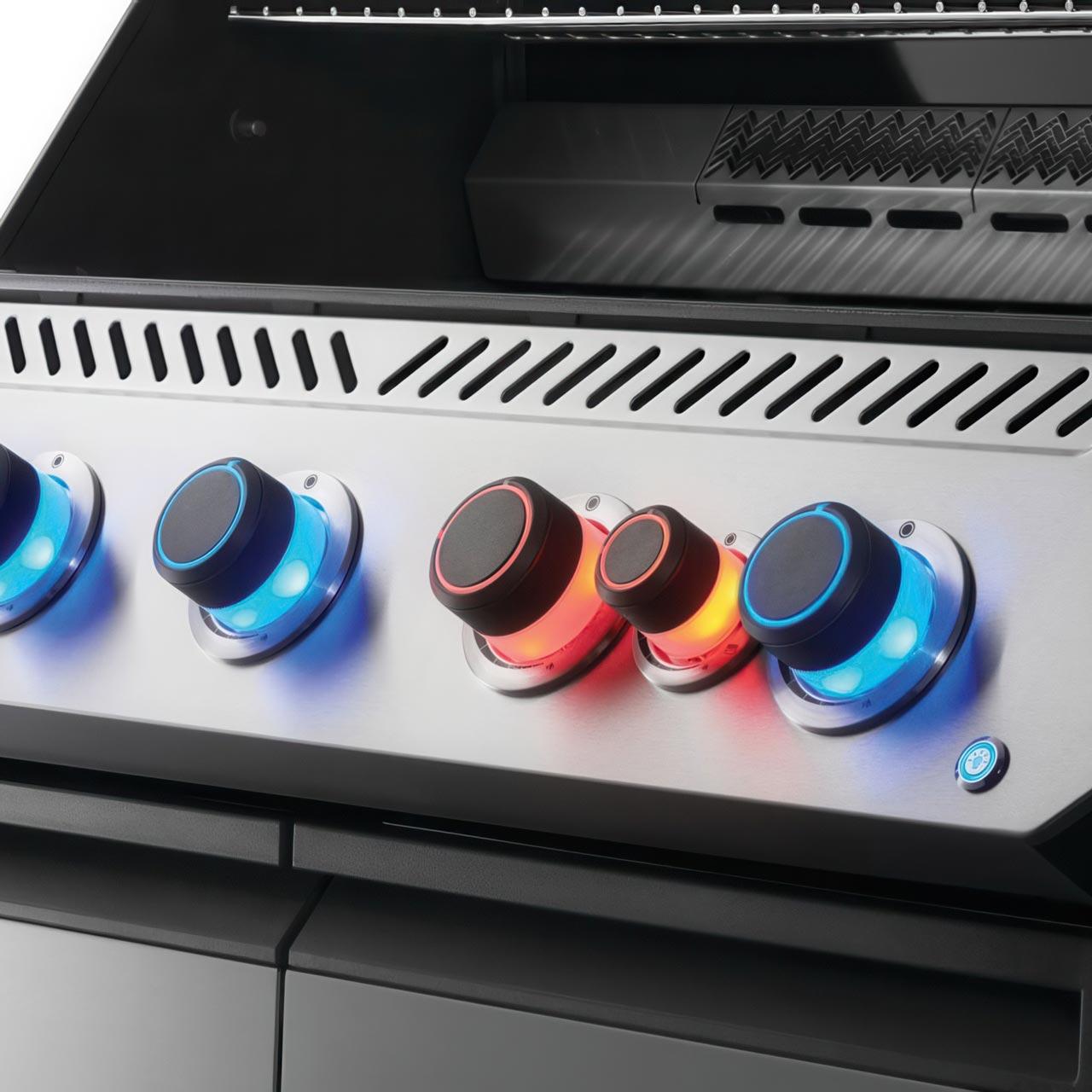 Eine leuchtende Idee: SafetyGlow™-KontrollknöpfeDie SafetyGlow™-Funktion sorgt dafür, dass alle Bedienelemente, deren Brenner aktiv sind, rot leuchten, sobald Gas im Spiel ist. So vergessen Sie nie wieder, Ihren Grill auszuschalten und schaffen obendrein ein gemütliches Grillen in den Abendstunden. |