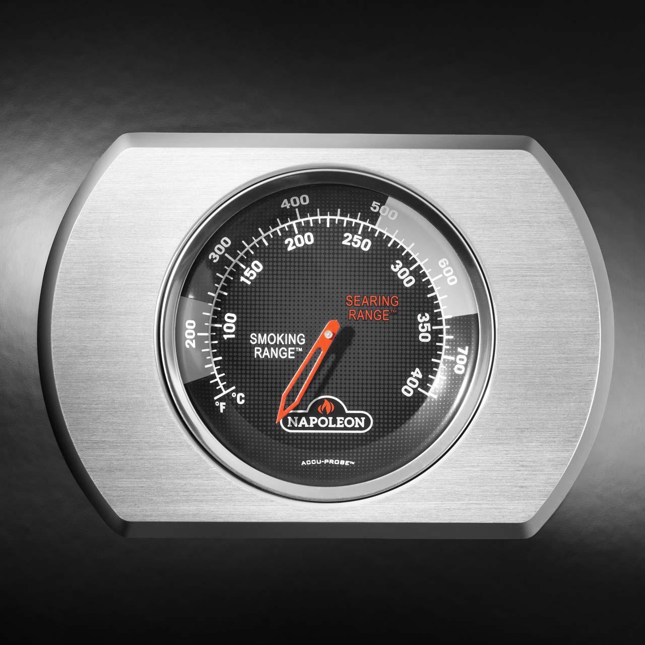 ACCU-PROBE™-Deckelthermometer behält der Grillmeister stets die genaue Temperatur im Innenraum des Grills im Auge und kann somit präzise Anpassungen vornehmen.