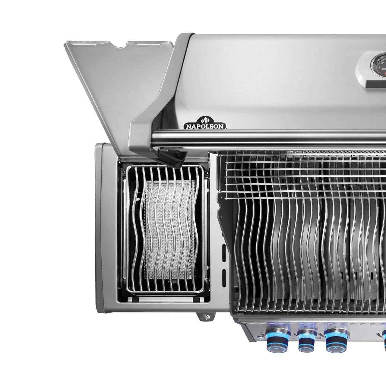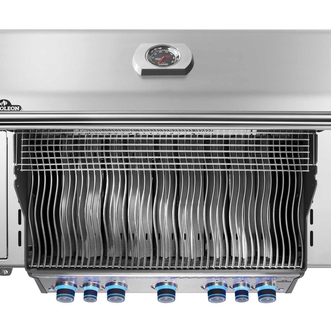 - WAVE™ Grillroste aus 7 mm Edelstahl: Robuste Konstruktion, pflegeleicht und verhindert das Durchfallen kleinerer Stücke; sorgt für das markante Napoleon-Branding