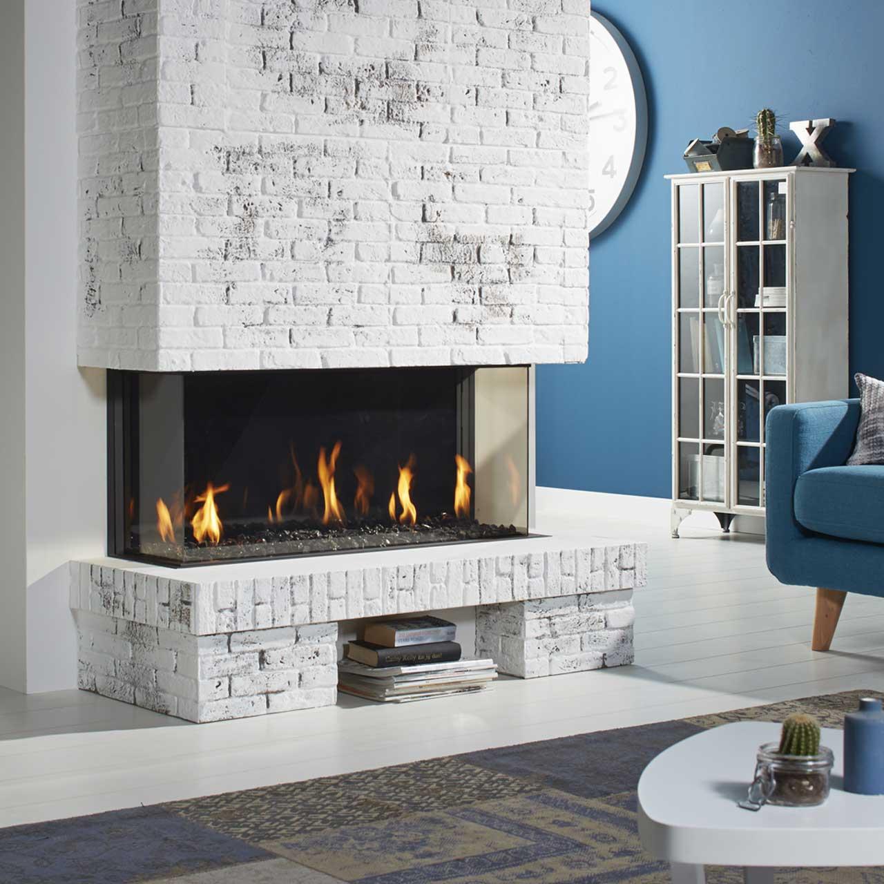 Gaskamin Global 120 BF Triple mit dreiseitiger Sichtscheibe