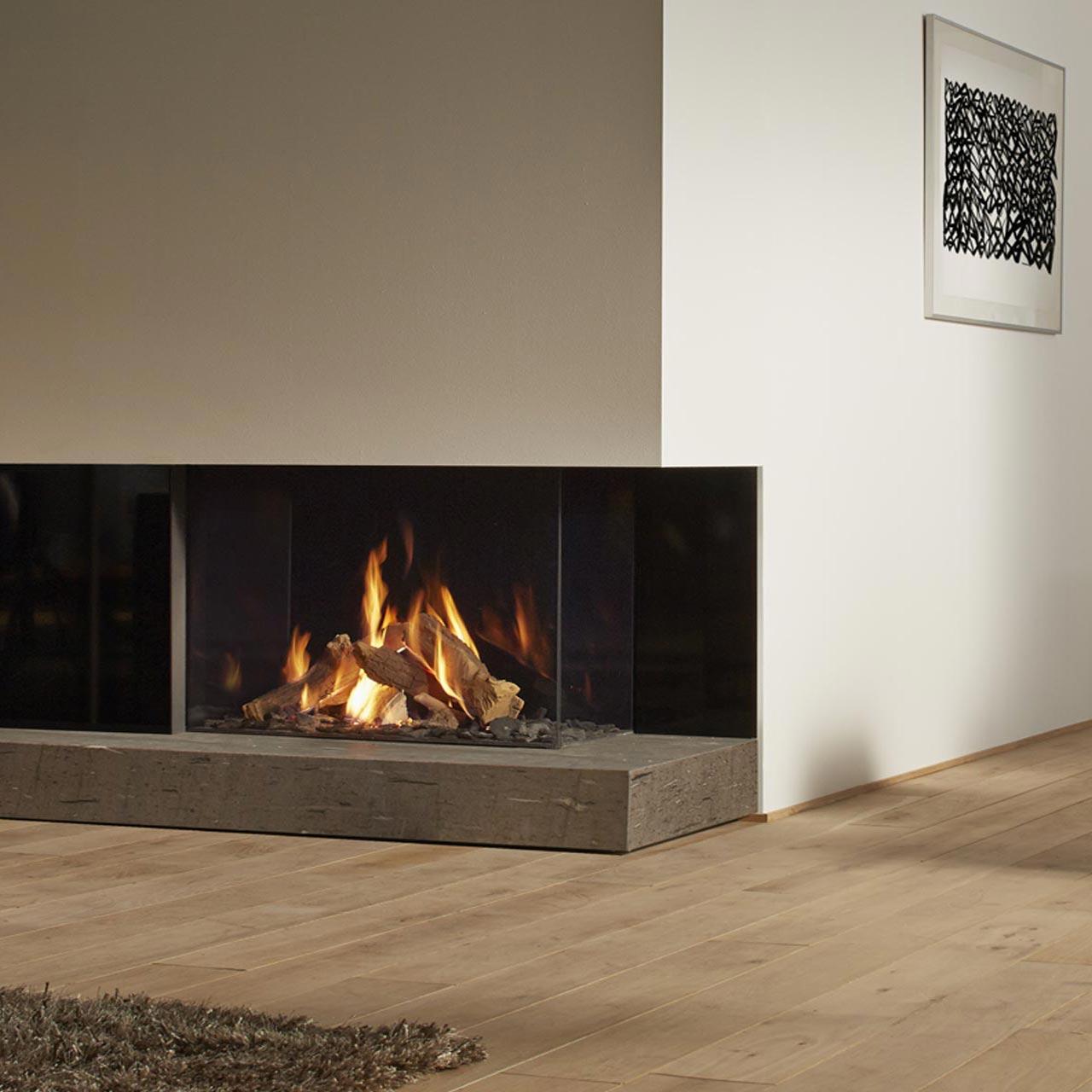 Die Verkleidung kann bei dem Gaskamin Maestro 105/2 vollkommen frei und ganz nach Belieben gestaltet werden. Die Brennkammer ist mit Holzscheiten aus Keramik ausgestattet. In Kombination mit dem schwarzen Interieur aus Stahl oder dem optionalen Ceraglas wird das Feuer bei dem Gaskamin eine authentische Optik verliehen.