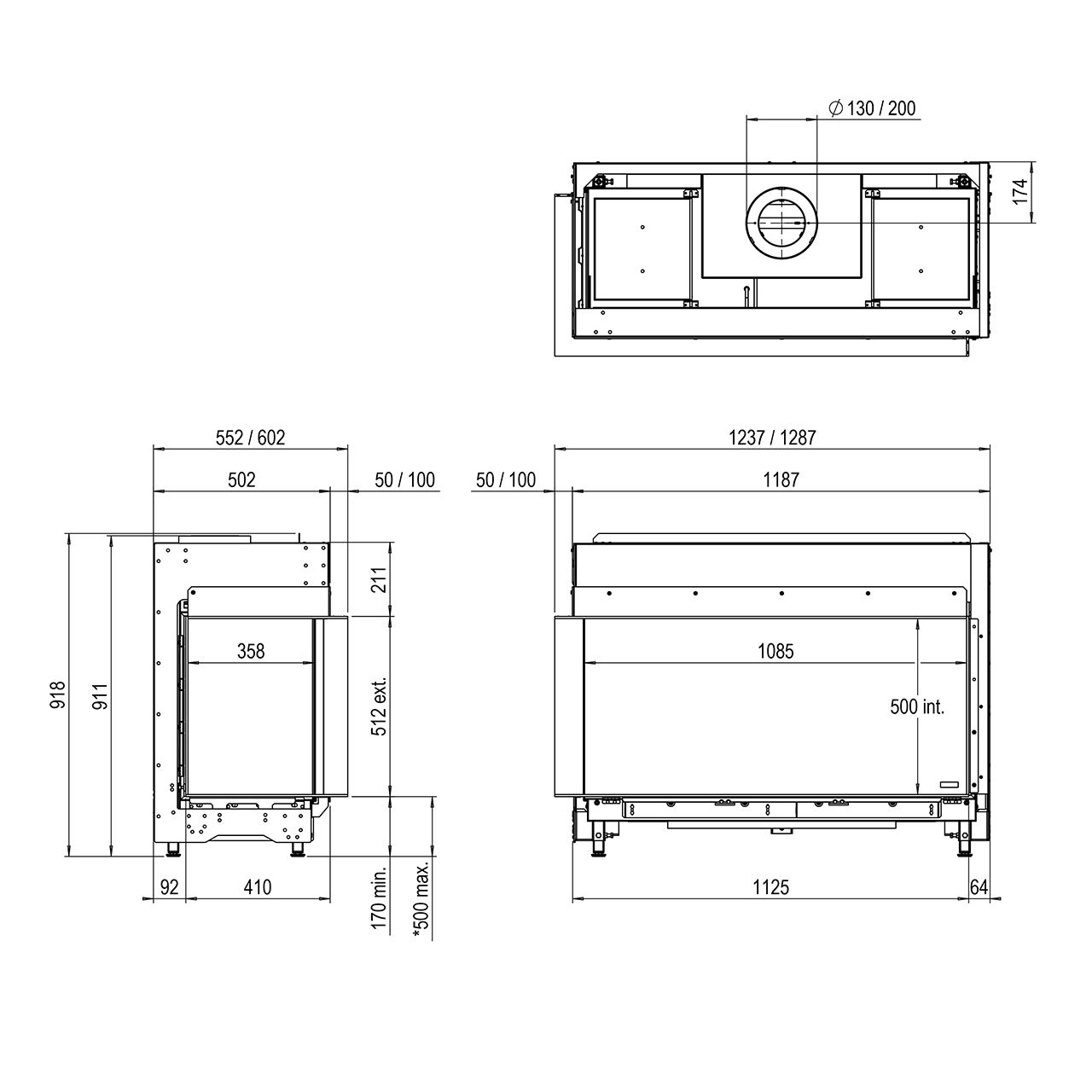- mit Feuerraumrückwand aus schwarzem Flachstahl oder optionalem schwarzem Glas