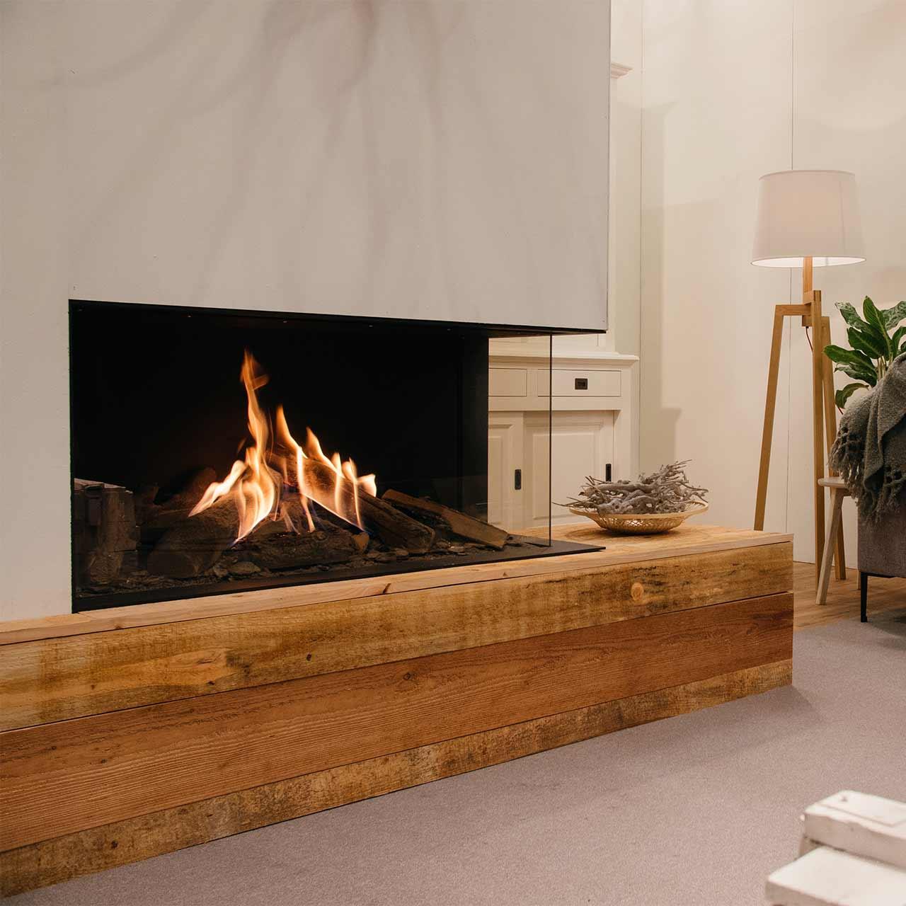 - Gaskamin mit 2-seitiger Sichverglasung links oder rechts