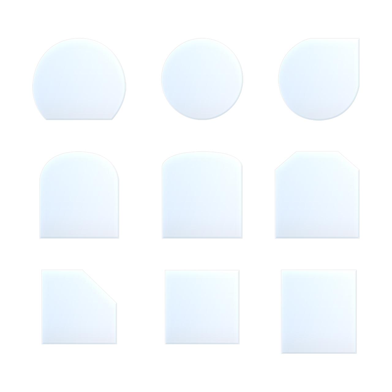 Rechteck, Maße: B110/H110 cm, 6 mm Rechteck, Maße: B90/H75 cm, 6 mm Rechteck, Maße: B50/H60 cm, 6 mm Rechteck, Maße: B60/H80 cm, 6 mm |
