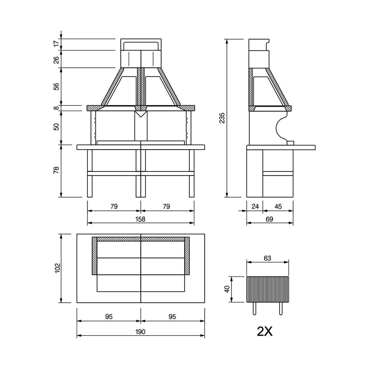 - 2 Grillbereiche mit Feuerfläche aus Schamottmaterial und Isoliermatte
