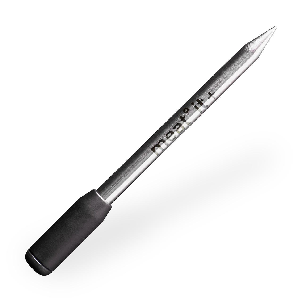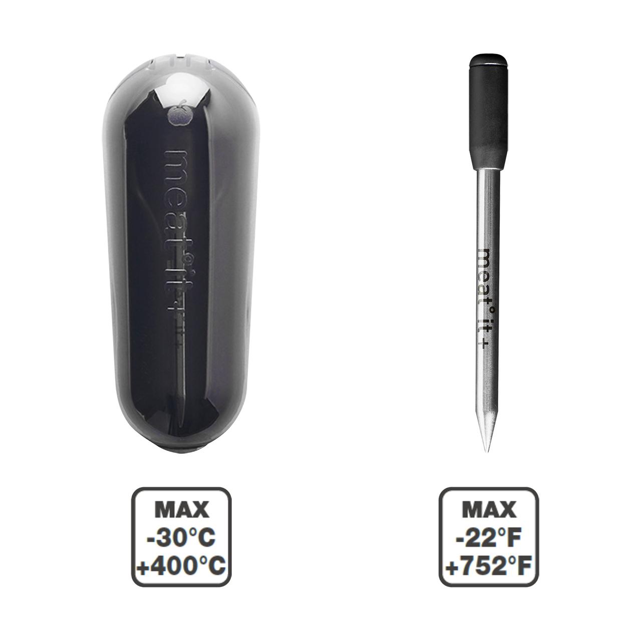 Das hochwertige und komplett kabellose Grillthermometer Mastard Meat-It + ist die perfekte Grillzubehör, wenn es um das Zubereiten von Fleischgerichten geht. Dieses smarte Grillthermometer überwacht nicht nur die Kerntemperatur Ihres Grillguts, sondern kontrolliert ebenso die Gargeschwindigkeit sowie die Wärmeentwicklung während des Garvorgangs. Und das ohne, dass Sie ständig die Haube Ihres Gasgrills öffnen müssen, um den Zustand Ihrer Fleischbeilage zu überprüfen. Das Thermometer verbleibt während des gesamten Garvorgangs im Grillgut und eignet sich für einen Temperaturbereich von -30 bis zu +400 °C. Kurzeitig, etwa für das scharfe Anbraten, sind sogar Temperaturen von +600 °C möglich.