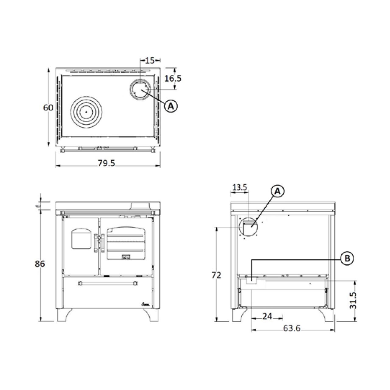 Holzherd Cadel Smart 80: flexibler Herd zum Einbau oder für freistehende Installation