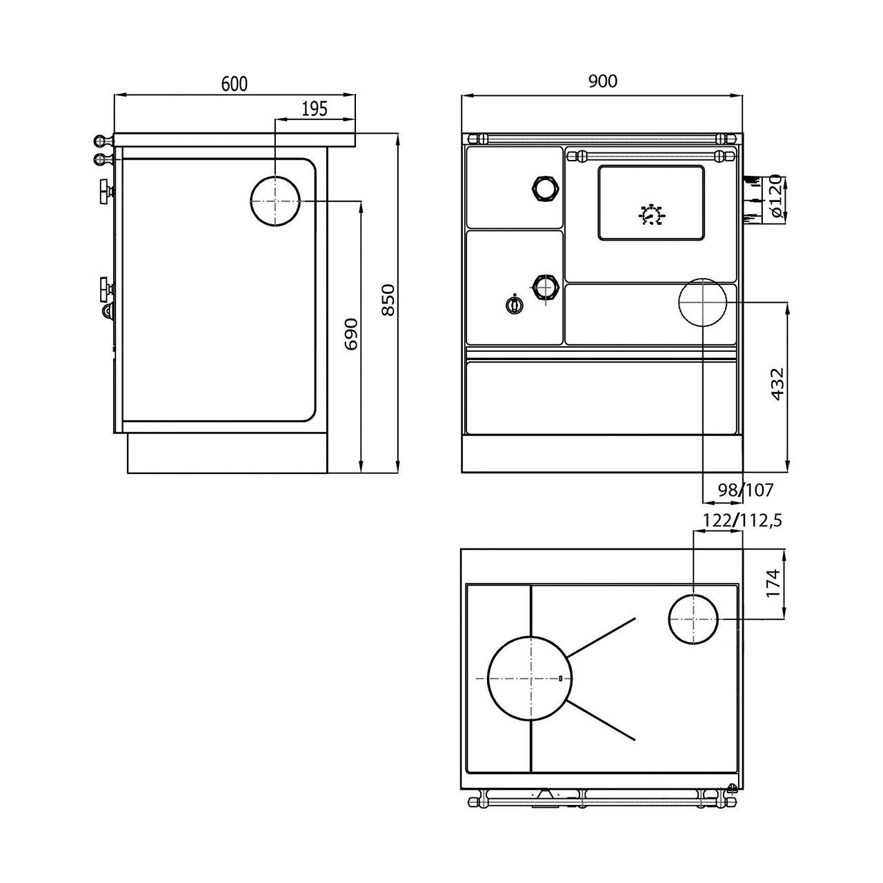 | Abmessungen: | H850/B900/T600 mm |