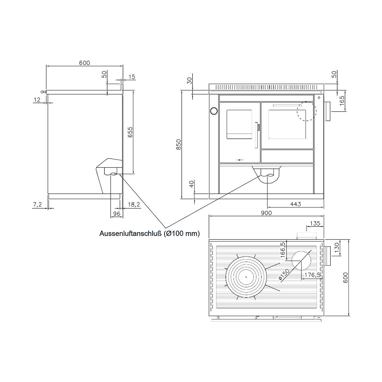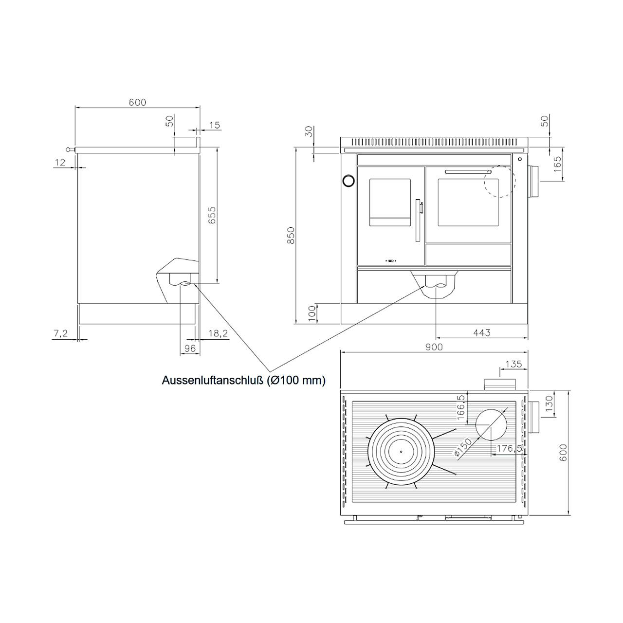 | Abmessungen Herd | H850/B900/T600 mm |