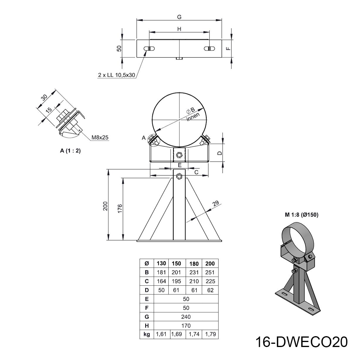 | Innendurchmesser (mm) | 130 | 150 | 180 | 200 |