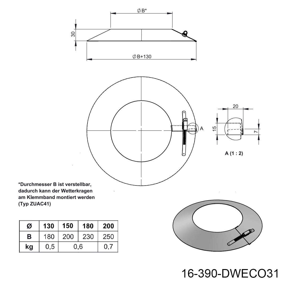 - Innendurchmesser: 130, 150, 180, 200 mm