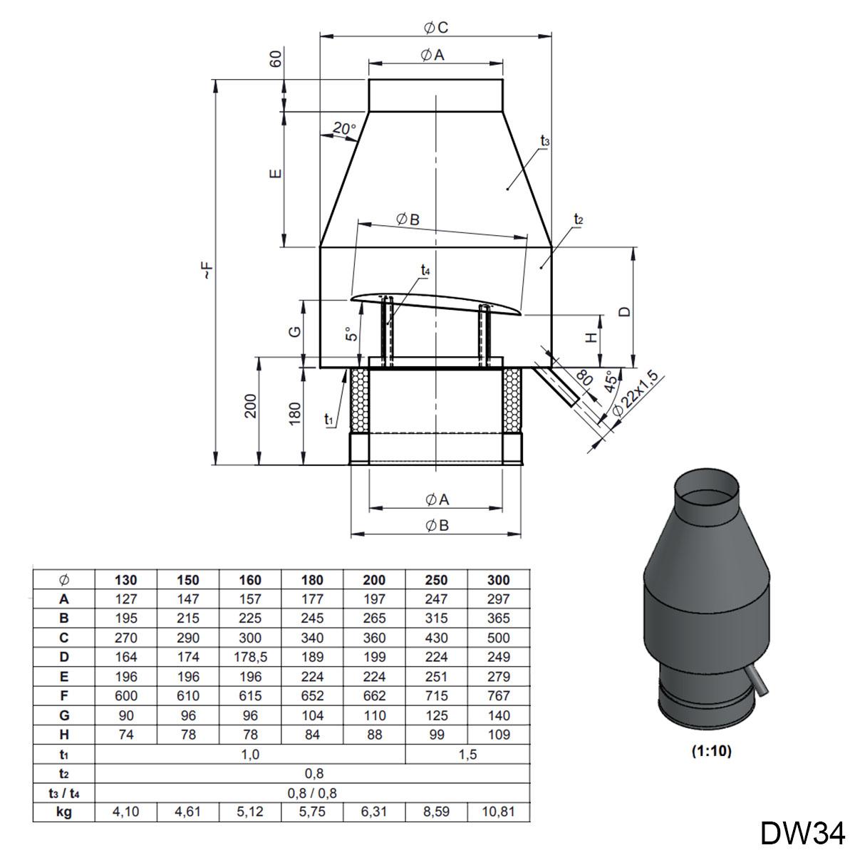 Jeremias DW Deflektorhaube mit Ablauf, inkl. Mündungsabschluss