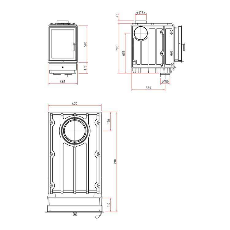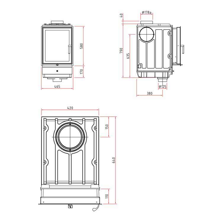 | Wärmeabgabe | % | über die Sichtscheibe: 20 konvektive Leistung: 80 wasserseitige Leistung: --- |