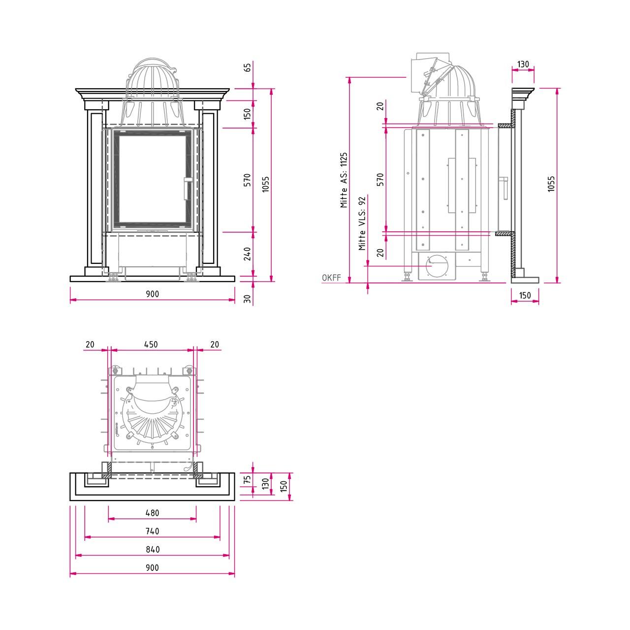 | Abstand zur Dämmung Kamineinsatz | mm | 70 |