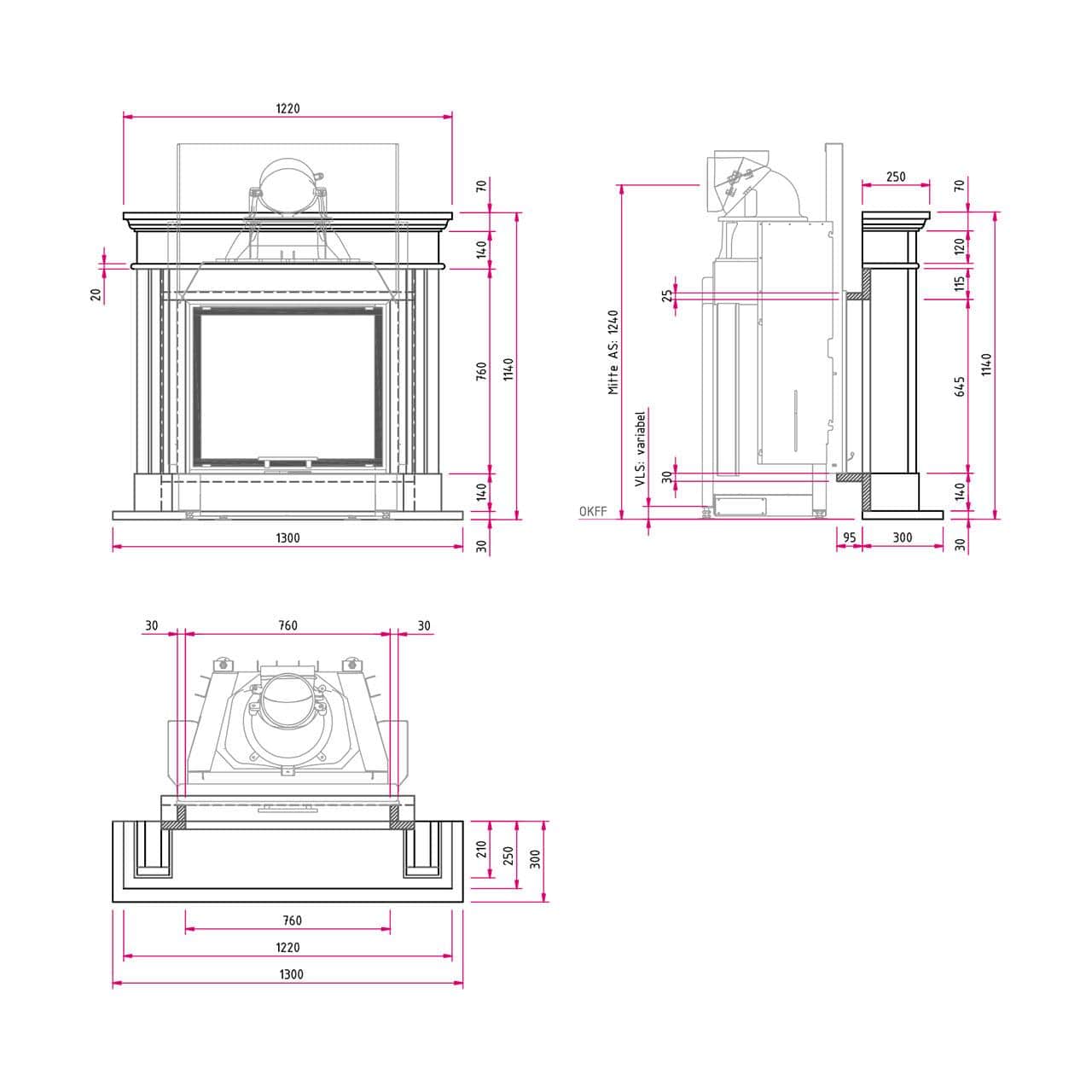 | Abstand zur Dämmung Kamineinsatz | mm | 90 |