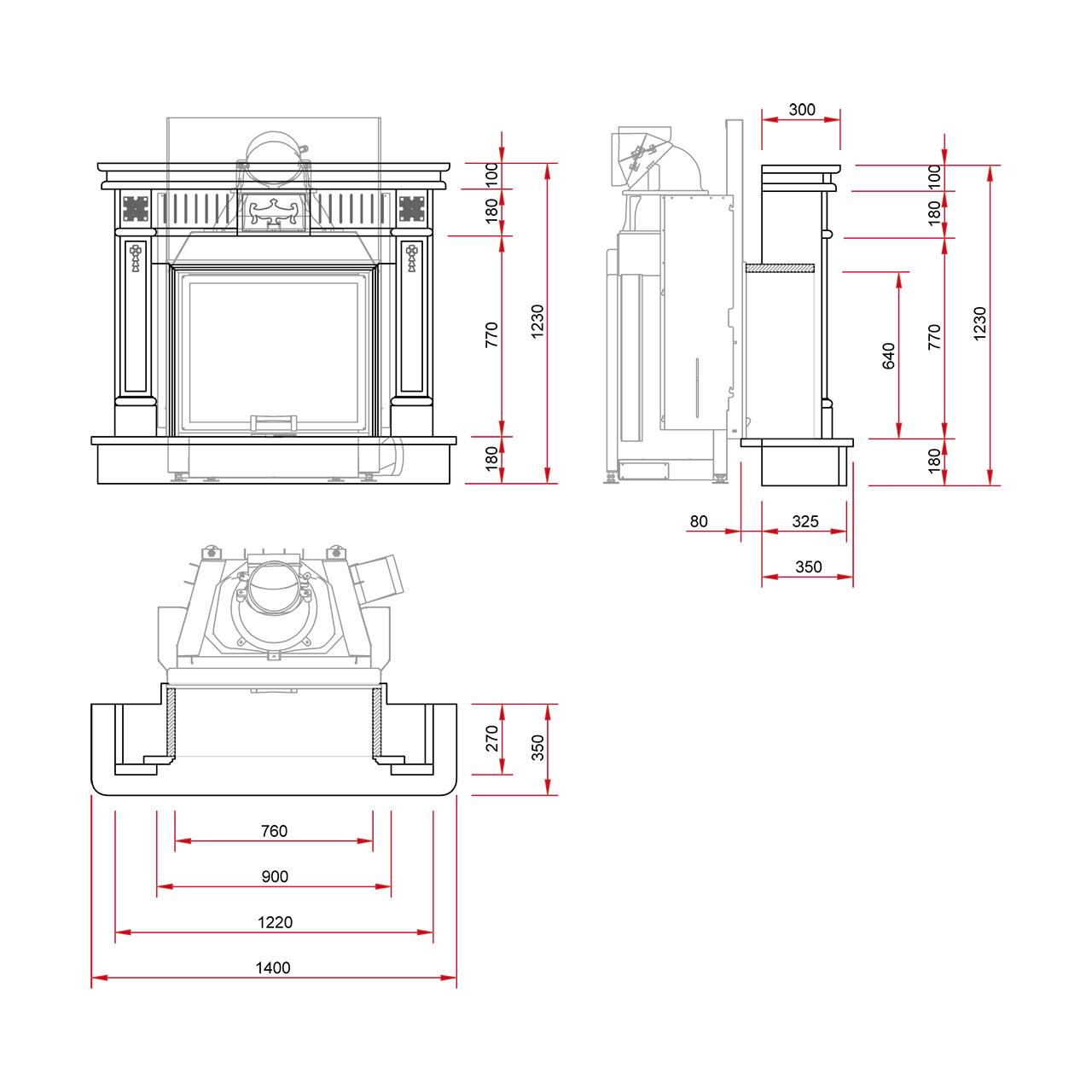 | Abstand zur Dämmung Kamineinsatz | mm | 90 |