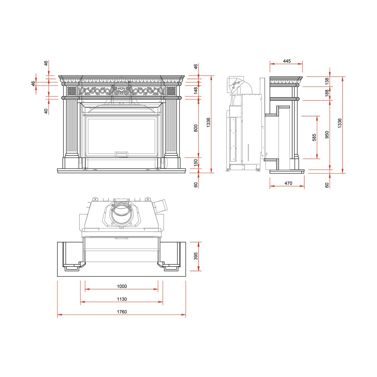 | Abstand im Strahlungsbereich Kamineinsatz | mm | 800 |