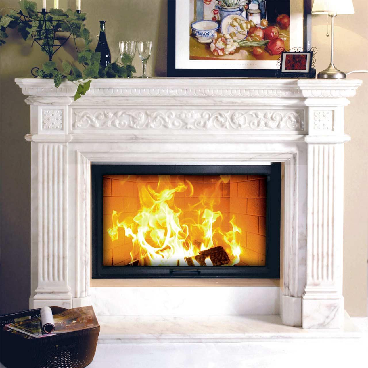 Der Natursteinkamin N36 Preston des Herstellers Camina überzeugt vor allem mit seinem traditionellen Design. Eingefasst wird die große Sichtscheibe von zwei Säulen, die an antike Architektur erinnern. Oberhalb der Brennkammer ist der Kaminsims mit einem dezenten Relief versehen. Der Sims kann zudem als Ablagefläche genutzt werden. Da sich der Rauchabzug hinten befindet wird das klassische Erscheinungsbild des N36 nicht gestört. Der Natursteinkamin N36 von Camina passt sich so in eine stilsichere Einrichtung ein und versprüht den Charme vergangener Jahrhunderte, ohne altbacken zu wirken.