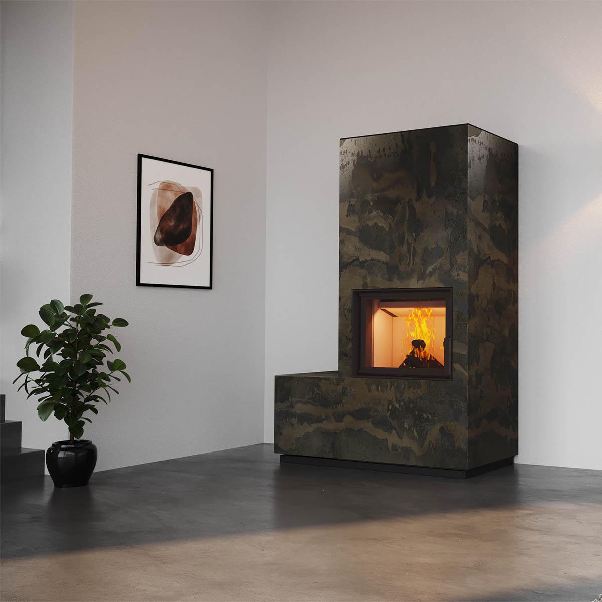 - Verkleidung aus edler Sinterkeramik (z. B. Edelrost-, Beton- oder Holzoptik)