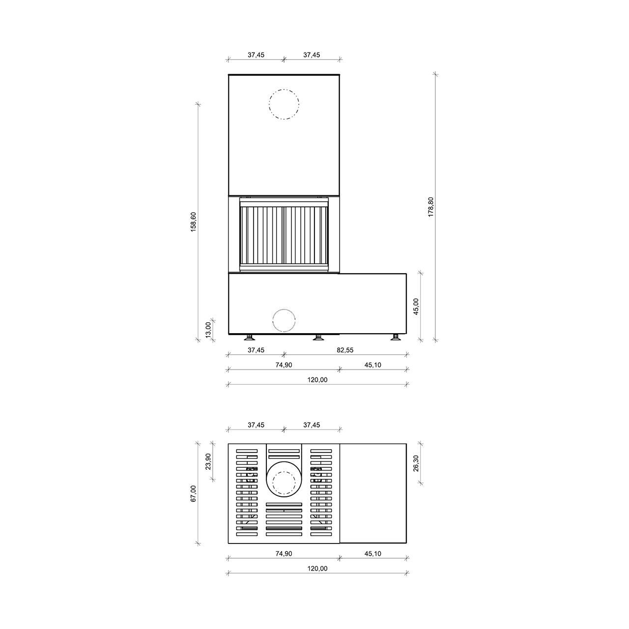 | Sicherheitsabstände | hinten 0 cm vorne 100 cm Türe vorne (Funkenschutz) 50 cm Türe seitlich (Funkenschutz) 30 cm |