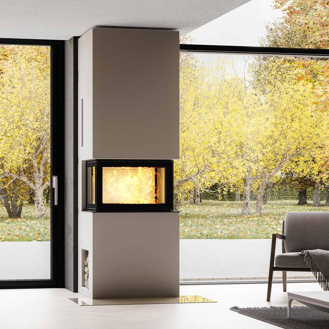 - Dreiseitig verglaste Brennkammer mit optimaler Sicht