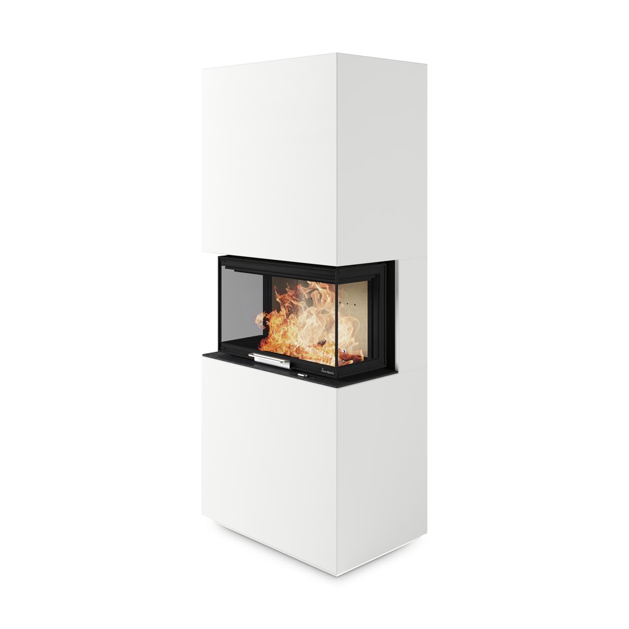Die versteckten Lüftungsschlitze im Sockel sorgen für ein elegantes Design, während die hochschiebbare Tür den Zugang zum Feuerraum ermöglicht. Die Scheibenspülung hält das Glas weitgehend frei von Rußablagerungen.Die Möglichkeit, den Kaminbausatz Nordpeis Monaco III mit wärmespeichernden Powerstone™-Elementen zu ergänzen, lässt ihn ein Teil der erzeugten die Wärme speichern. Dadurch ist selbst nach dem Erlöschen der Flammen eine Wärmeabgabe an den Raum möglich.