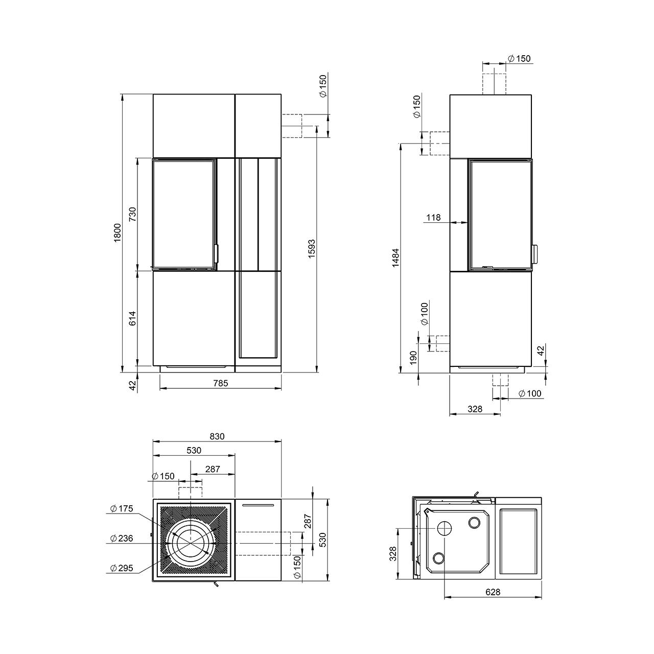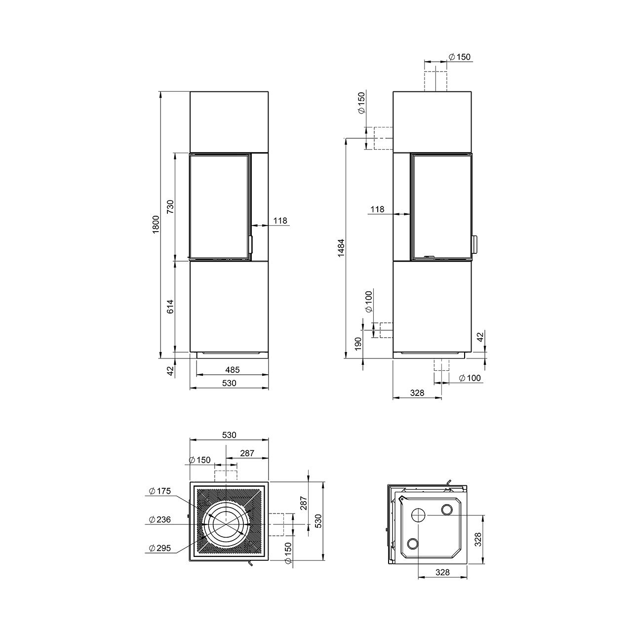 | Rauchrohranschluss | Ø 150 mm |