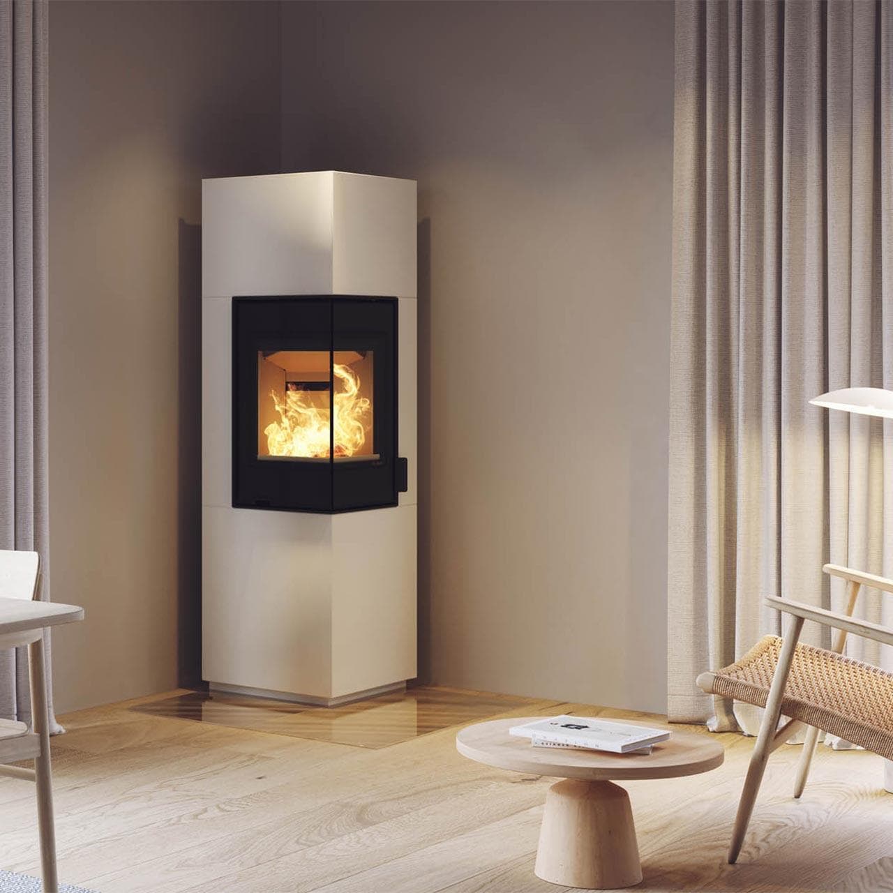 - Exclusive Feuerraumtür mit zweiteiliger Sichtscheibe über Eck, für einen saubereren Look und ein tolles Flammenbild