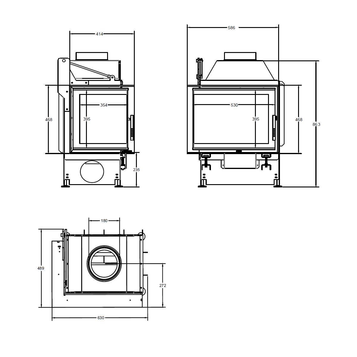 - Rauchrohranschluss: Ø180 mm, nach oben