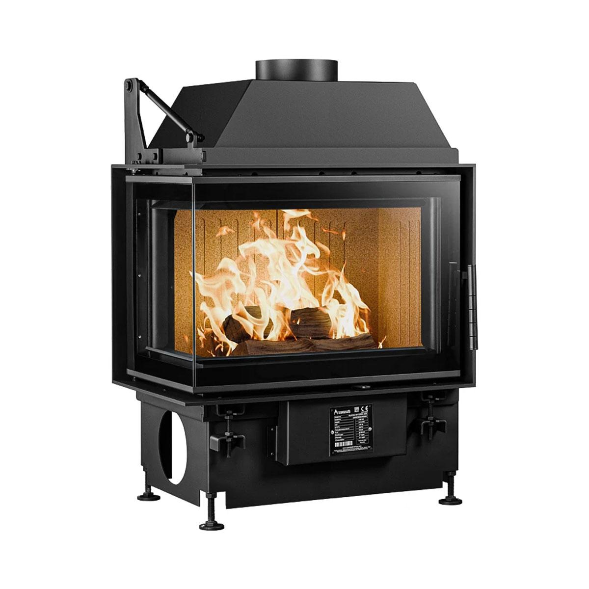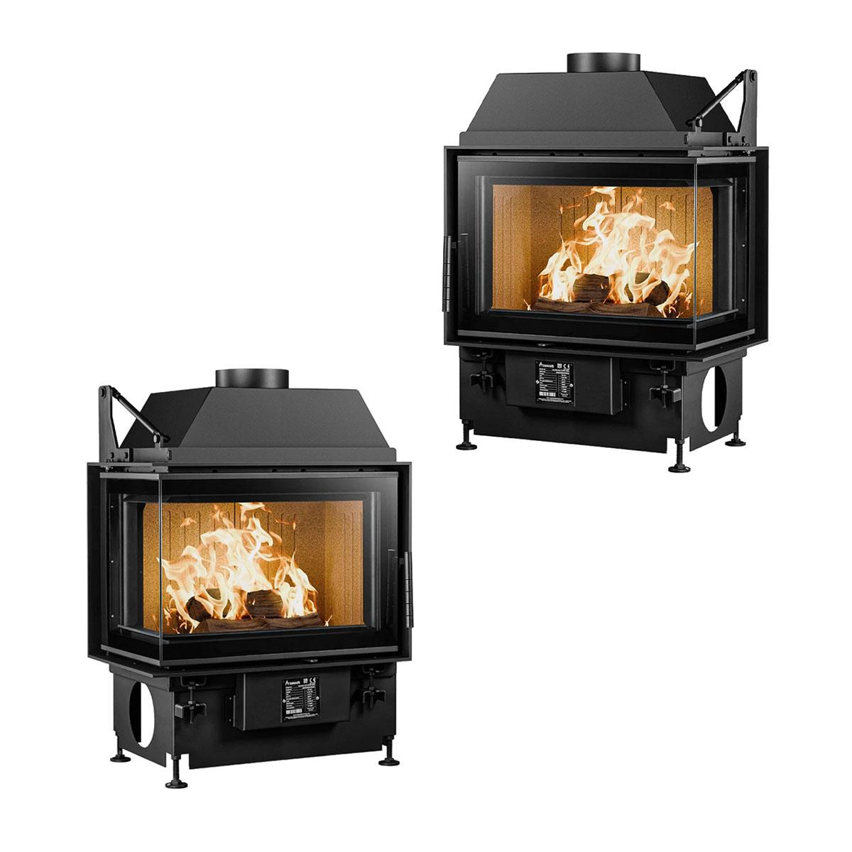 Der Kamineinsatz A.Caminetti Quattro 60 Open Side erzeugt mit einer Leistung von 8,5 kW eine angenehme Wärme und schafft ein tolles, gemütliches Ambiente in Ihrem Zuhause. Durch das geradlinige moderne Design mit großer Eckscheibe wird der Kamineinsatz zum Blickfang Ihres Wohnzimmers. Je nachdem, wie Sie Ihren Kamineinsatz im Raum platzieren wollen, können Sie zwischen einem Modell mit Eckscheibe auf der linken oder rechten Seite wählen. Die Scheibe misst ca. 39,5 x 62,7 cm (HxB) an der Front, die kurze Seitenscheibe ca. 39,5 x 35,4 cm (HxB).