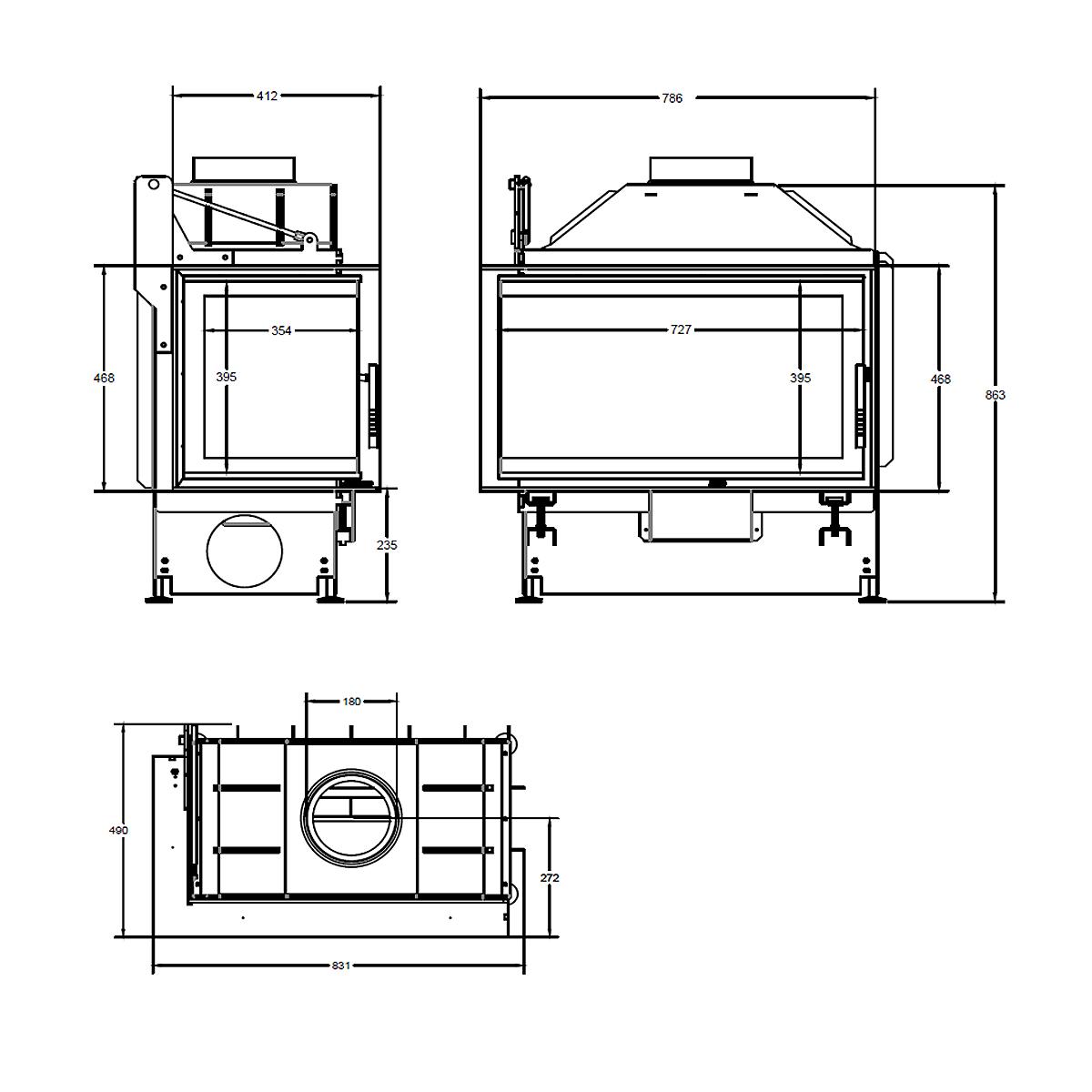 | Maße Feuerraumtür (H x B x T) | 395 x 627 x 354 mm | |
