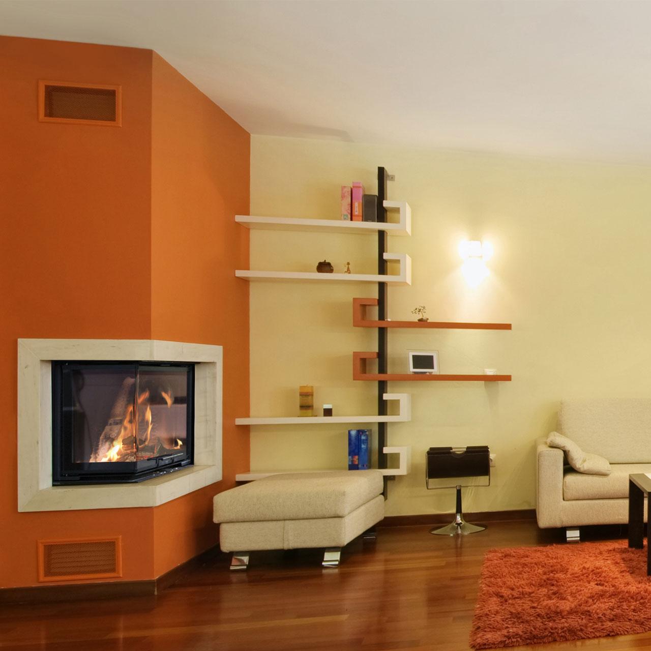 - robuster Kamineinsatz mit großzügiger Eckverglasung links oder rechts