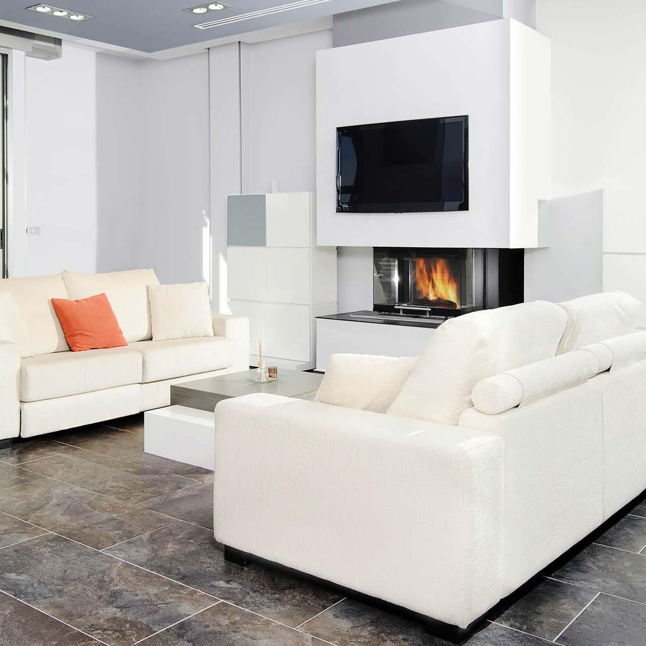 Der BeF Royal V 6 C kann seine Wärme effektiv halten: Dafür sorgt eine umfassende Brennraumauskleidung aus Carconstein. Das Material speichert die Wärme des Feuers ein und gibt diese dann an den Raum zurück. Auf diese Weise kann der Kamin seine Wärme bis zu 12 Stunden lang in der Brennzelle halten. Außerdem verfügt der Carconstein über eine aktive, strukturierte Oberfläche und kann so selsbt kleinste Partikel einfangen und verbrennen. Dabei spricht man von der sogenannten Nachverbrennung. Sie können die Feuerraumauskleidung wahlweise in weiß oder schwarz bestellen. Der Feuerraum ist aerodynamisch angepasst und erreicht eine effektive Abgasströmung.